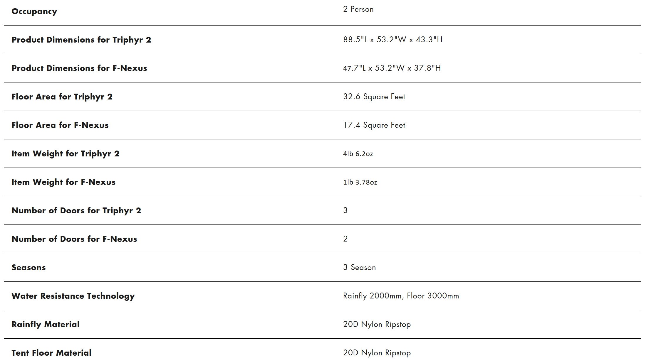 When additional space becomes a necessity, effortlessly connect the F-Nexus extension to the Triphyr 2. This seamless addition empowers you to adapt to diverse environments, whether you're on a quick backpacking trip or a more extended camping stay. You have the freedom to choose based on your specific needs and the nature of your journey.
